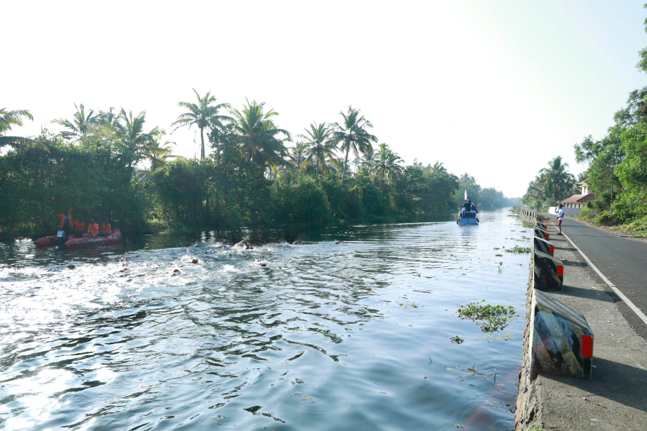 Crowds cheering as swimmers tackle the currents at the 4th Kerala State Open Water Swimming Competition in Pampa River, of National Waterway Path, Ambalapuzha, Allapuzha! 🏊♂️ held on January 10, 2026 🌊